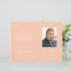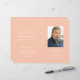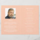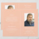 Modern funeral program / funeral pamphlet featuring a simple yet elegant design. The front includes a photo of the deceased along with their name, birth and death dates. The inside has a second picture along with two headers and two templates for the obituary and order of service. The colour palette is peach / pastel orange and may be changed in the design editing tool. This program can be used for a funeral, memorial service or celebration of life. PLEASE NOTE: The default paper option selected is "matte" and it's the best option if you are ordering this as a folded program.