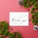 Simple and elegant 5x7 thank you cards feature "thank you" in modern hand lettered gold foil calligraphy script on a white background. Personalise with your custom text beneath; shown with "from the future Mrs. [name]". Add a pre-printed personal message to the inside, as well as a photo from your event.