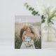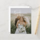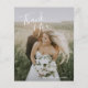 Simple budget wedding thank you cards with "Thank You" in an elegant handwritten script across the top left and your names in the bottom right, over your favourite photo. The backside has your personal message in black over a white background. The chic hand lettering adds a romantic touch to this minimalist design.