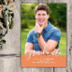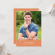 Simple Elegant Photo Graduation Announcement with a sleek and simple vertical design in orange. Add a photo and graduation details to customise. Background colour on back side of invite may be changed to complement the photo or to add a school colour.