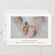 Announce the birth of your new baby boy or girl with this modern photo announcement card featuring the message, "Merry Little Christmas" in an elegant thin white script along with your family name and the year over your favourite horizontal photo. The backside has a second photo along with your baby's name and birth stats in black over a white background.