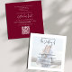 Perfect for summer winter fall or spring. This design features a modern simple minimalist photo picture, QR code rsvp via the website, with online scannable scan web digital, burgundy wine elegant script text, engagement photo couple white overlay, a classic traditional minimal simplistic, romantic calligraphy typography font, chic overlay vellum style design, a modern simple rustic elegance romantic, with wedding details more information info