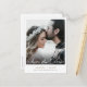 This simple, chic photo wedding save the date postcard template features a clean, modern design with elegant script in white over the lower portion of your photo. We've added a gradated layer at the bottom to enhance this 'Save the Date' element of the card's design, so that it will stand out more clearly. Having said this, the final look will depend on the photo you choose and how much contrast there is between the color at the bottom of your photo and this white script. We have chosen a golden hue for your names on the front, but there are numerous other golden and other tones you can chose instead by entering the hex color number of a color you like or simply choosing anther color by sight in the design tools. Similarly, we have chosen a dark gray tone for the date and location info on the front of the card below your names, and you can change that color easily as well, to black if you prefer, for example, or any other tone. You can also of course change the + symbol between names to 'and' or another symbol if you'd like, or change the font of the text with your information. On back, you can change numerous aspects of the design, too. You can delete the lines for the addressee's details, for example, and edit in various ways. Customize this design with your favorite photo and to your taste and make it uniquely yours!