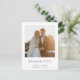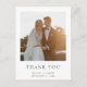 This is an elegant photo wedding thank you card using a classic font, a simple photo and minimalist layout for a timeless and classic thank you postcard.