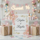 Simple Elegant Pink Rose Gold Floral Quinceañera Pedestal Sign with a refined gold frame design. Perfect for a sweet fifteen, this customisable template can be personalised in Spanish or English for a timeless, feminine touch.