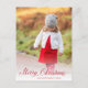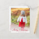 Send out holiday cheer with this modern typography Christmas photo postcard featuring a simple design with "Merry Christmas" in an elegant red script along with your family name over your favourite full bleed picture. The backside has your personal message and return address for easy mailing.