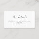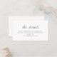 Romantic wedding details card feature stylish script and elegant font event details in black and white, modern and simple, great for minimalist formal wedding, traditional classic wedding, modern simple wedding.