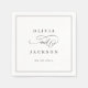 Romantic wedding napkin features stylish script and elegant font names in black and white, modern and simple, great for modern simple wedding, minimalist formal wedding, traditional classic wedding.