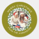 Simple Elegant Round Christmas Photo Family Name Classic Round Sticker