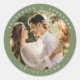 Simple Elegant Sage Green Greenery Wedding Photo Classic Round Sticker
