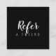 Simple elegant black and white referral card featuring chic hand-drawn script typography. Personalise by adding your contact details on the reverse along with your referral offer. Designed by Thisisnotme©