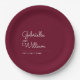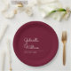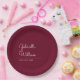 Simple Elegant Script Burgundy Wedding Paper Plate