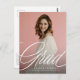 With its elegant text, this one-photo graduation announcement and invitation postcard is the perfect way to celebrate your graduate and show off a beautiful senior photo. This vertical design features a classic script "grad" along with your personalised text - name, school, year, etc. On the coordinating back, you'll find room for graduation party invitation details in matching sophisticated text. This simple but stylish announcement is part of a collection by Lea Delaveris Design. Find more colours and styles along with decor, party supplies and more.