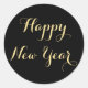 Simple Elegant Script Happy New Year Black Gold Classic Round Sticker