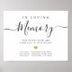 Modern script wedding in loving memory sign in black and white with color editable heart shape, simple and elegant.