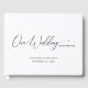 This black and white wedding guestbook offer a modern minimalist design. The words "Our Wedding" appear in a modern elegant handwriting calligraphy. Custom text allows to to personalise with the names of the couple and their wedding date.