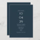 A modern design featuring your special date and wedding details set in classic, chic typography set on a dusty blue background. Designed by Thisisnotme©