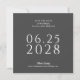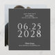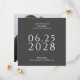 A simple, elegant and tasteful wedding save the date card in deep charcoal grey with white text and features a photo of the happy couple on the back side of the card. The text template is easy to fill in with your info and the date is shown in large bold text to aid your future wedding guests in planning for your big day. The unique square shape of this card adds modern style and leaves a lovely impression for your recipients.