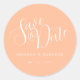 Simple Elegant Stylish Peach Wedding Save the Date Classic Round Sticker