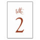 This elegant and simple terracotta table number is part of the Autumn Romance collection.