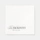Elegant typography design with timeless serif font and classic calligraphy in black and white, simple and romantic. Great family name napkins for modern classic wedding, and formal vintage family party and other events.