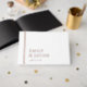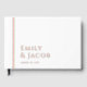 Simple and so elegant, this modern guest book design has rose gold foil lettering with the bride and groom's names and wedding date. A single matching foil line runs from top to bottom along the left side of the front cover. The spine of this guestbook also has a text template to personalise with your desired wording. Upload your own horizontal photo on the back cover to add a special moment you wish to capture.