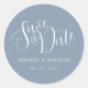 Simple Elegant Typography Dusty Blue Save the Date Classic Round Sticker