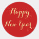 Simple Elegant Typography Happy New Year Red Gold Classic Round Sticker
