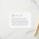 Share all your important wedding information with this elegant and modern details card. Featuring dark grey text on a crisp white background, this design offers a clean and minimalist layout that's easy to read. Perfect for including accommodation details, directions, your wedding website, or RSVP instructions. Ideal for classic, contemporary, and destination weddings, and fully customisable to match your unique celebration.