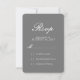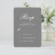 This simple yet classic wedding rsvp response card features an elegant combination of fonts on a charcoal grey background. This design is timeless and will work with any wedding theme. Customise the background colour to match your wedding colours.