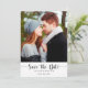 This modern save the date card is perfect for your favourite vertical engagement photo in the front, and it has an additional horizontal photo on the back of the card.