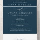 Simple elegant wedding navy blue traditional all in one invitation