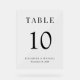 Simple clear acrylic wedding reception table number sign featuring "Table" and the table number in elegant serif typography, and your names and your reception date in modern typography. Create each table number individually and add to your shopping cart one at a time, then check out once all numbers are in your cart.