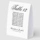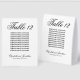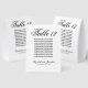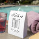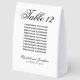 These wedding table number tent signs are simple and elegant. They feature fancy script with the table number with space for 10 names, making it easy for your guests to find their tables. The text is black on a white background. There is space for the names of the couple and wedding date as well.