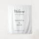 Simple Elegant Welcome Script Wedding Backdrop Banner. Simple design with trendy script in black colour. Personalise all the text on the banner, bride and groom names and the wedding date.