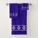 Elegant White Fleur de Lis flowers on navy blue Bath Towel Set. Fleur de lis flowers stand for beauty, perfect love and loyalty. Simple stylish design