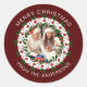 Simple Elegant Wreath Christmas Photo Family Name Classic Round Sticker