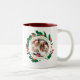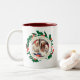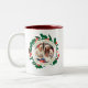 Simple Elegant Wreath Christmas Photo Family Name Two-Tone Coffee Mug