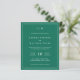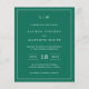 Simple budget wedding invitation featuring a modern yet elegant design with your two letter monogram at the top, a bold date layout and your details surrounded by a thin border. All design elements are in white over a jewel tone emerald green background and may be changed in the design editing tool. A chic and stylish design that is great for a minimalist couple.