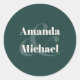 Simple Emerald Green Modern Bride and Groom Classic Round Sticker