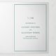 Simple jewel tone emerald green all in one wedding invitation template with rsvp card and enclosure card attached, making this invitation suite convenient and budget friendly. The wedding invitation features a modern yet elegant design with your two letter monogram at the top and your details surrounded by a thin border. All text is in emerald green, over a white background and the text and border may be changed to any colour you wish. The RSVP postcard has your mailing address on the back and your guests simply cut off and mail back to you. NOTE: First class postage is required for the RSVP postcard. Postcard stamps will not be enough postage due to the size. A chic and stylish design that is great for a minimalist couple.