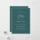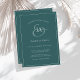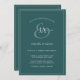 Simple Emerald Green Monogram Wedding Invitation. Stylishly impress your wedding guests with this trendy dark green wedding invitation featuring a beautiful white script, with the bride and groom's initials on an emerald green background. This Invitation has a stunning forest green design, with modern and minimal vibes, perfect for your simple, trendy, minimalist wedding.