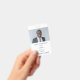 Simple Employee Photo ID Name Logo White A fully customisable photo ID badge which is easy to personalise with your photo, logo and text. Swap in your photo (of landscape orientation) with the sample image, and company logo, and easily personalise the text to your own details. You can also add your return address on the back in case your card gets lost or delete this text if you so wish. The font styles and colour can also be changed via the Customise Further option, as well as the background colour.