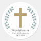 Simple Eucalyptus and Cross First Holy Communion Classic Round Sticker