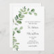 Simple Foliage White Wedding Invitation. Modern Font. Eucalyptus. No Parents.