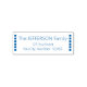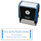 This simple rubber stamp design features a personalised family name and a personalised address. It also features columns of square shapes.