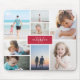 Photo mousepad where you can add eight of your own photos in a minimalist collage. At the centre, against a red background, add your family name and initial.