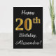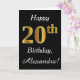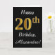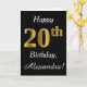 This simple birthday card design features the message "Happy 20th Birthday", with the "20th" having a faux gold-like appearance. It also features a custom name, and a black background. It could be given to somebody who is celebrating their twentieth birthday.