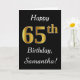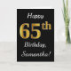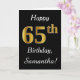 This simple birthday card design features the message "Happy 65th Birthday", with the "65th" having a faux gold-like appearance. It also features a custom name, and a black background. It could be given to somebody who is celebrating their sixty fifth birthday.