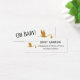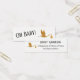 These cards are modern and simple with black text on white, accented by a single stork which appears on the front as well as smaller on the back. The flying stork silhouette carries a precious baby bundle. The graphic has been embellished with a faux gold foil effect for a festive touch. Fonts and text colors as well as background colors can be changed if you wish. Matching items are available. // Designed by Melody Watson for Paper Muserie.